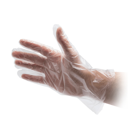 Átlátszó, érdesített HDPE fóliakesztyű téphető blokkos kivitelben, élelmiszer-biztonsági felhasználásra. Anyag: polietilén (HDPE, vastagság: 0,011 mm). Jellemzők: nem steril, átlátszó, érdesített, mindkét kézen hordható fóliakesztyű. Élelmiszer-biztons