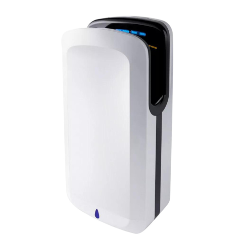 A KW1091 kézbedugós airblade kézszárító akár 7 mp alatt képes megszárítani a kezet. A levegő nagy sebeséggel apró fúvókákon keresztül áramlik ki, és lehúzza a vizet a felhasználó kezéről. A lecsöpögő víz egy vízgyűjtő tartályba kerül, amit időnként ürí