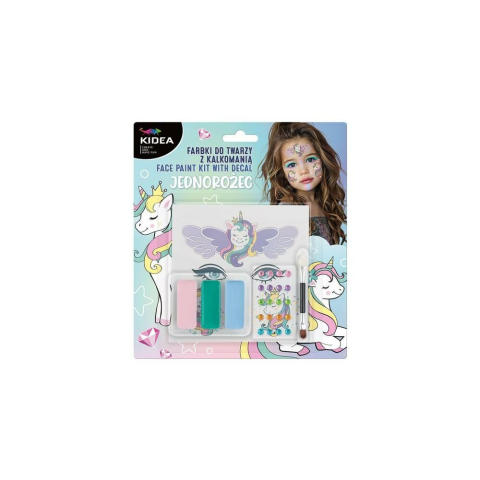 1 kép DERFORM Kidea 3 színű unikornisos arcfesték készlet - tetoválással (FDTDKUKA)