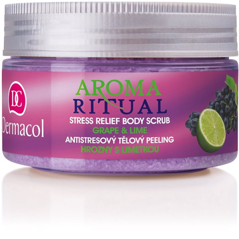 Testradír - női, zsíros, normál, kombinált, száraz és érett bőrtípusra, főbb hatóanyagai kókuszolaj, citromsav, szőlőmag olaj és e-vitamin, természetes olaj tartalmú és vitaminos, tömege 200 g A stresszoldó DERMACOL Aroma Ritual Grape & Lime Stress Relief Body Scrub testradír a Dermacol világmárka terméke nőknek. A cukorkristályok hatékonyan távolítják el az elhalt hámsejteke