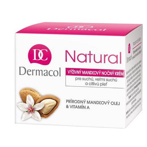 Arckrém - érzékeny és száraz bőrre ajánlott, A DERMACOL Natural tápláló mandulás éjszakai krém természetes mandulaolajjal és panthenollal regenerálja, erősíti és puhítja a bőrt alvás közben. A krém száraz, nagyon száraz és érzékeny bőrre aj