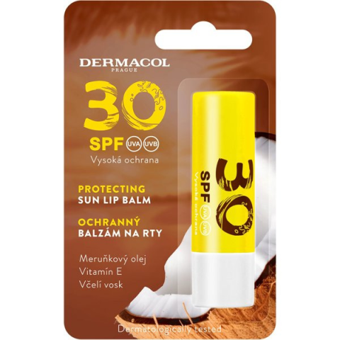 Ajakbalzsam - hidratáló, bőrnyugtató, regeneráló, fényvédős és külső hatásokkal szemben védő hatás, 30 SPF védőfaktor, kókusz illat, barackolaj, napraforgóolaj és méhviasz hatóanyag Az ajkak ápolása nem csak a téli időszakban nagyon fontos. Gondoskodj a lehető legjobb védelemről a klassz DERMACOL ajakápoló használatával. Hidratálja és megóvja ajkaidat a kiszáradástól. A regenerál