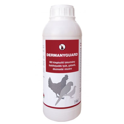 A Dermanyguard itatófolyadék 1 l természetes alapú, ivóvízben alkalmazható készítmény baromfik és díszmadarak parazitamentesítésére és tollazatvédelmére. Segít a külső élősködők távoltartásában és támogatja az állomány egészségét. A Dermanyguard itatóf