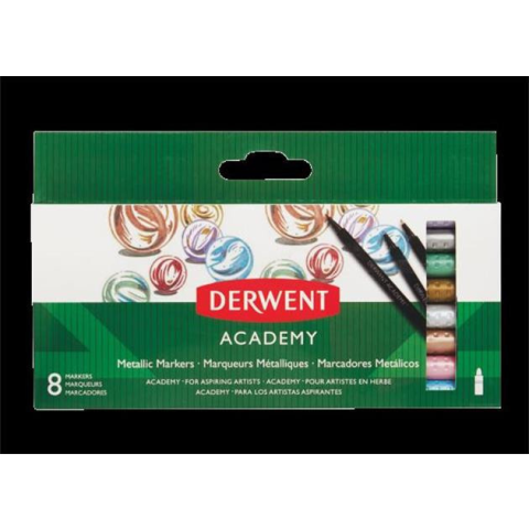 Filctoll készlet, DERWENT, Academy, 8 különböző metál szín -8 csillogó színben -kiváló rajzhoz, dekorációs munkákhoz és naplóvezetéshez -nagyszerűen látható a fekete papiron is Gyártó/első EU forgalmazó elérhetősége: LEITZ ACCO Brands GmbH & Co KG