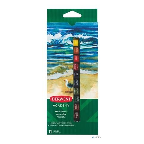 Tempera készlet, 12 darabos, 12 ml, DERWENT Academy -12 db-os készlet -12 ml/tubus -pigmentben különösen gazdag alapanyagból készült -könnyen használható festék, amely lehetővé teszi a szép színátmenetek kialakítását -használható: vízzel hígítva különf