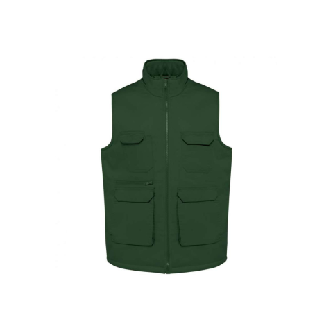 UNISEX PADDED MULTI-POCKET POLYCOTTON VEST Külső: 65% poliészter/35% pamut100% poliészter belső párnázás100% poliészter belső bélésKarcsúsított szabás2 nagy rávarrt zseb tépőzáras zsebfedővel és oldalsó nyílással és 2 rávarrt mellzseb tépőzáras zsebfed