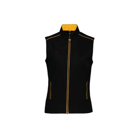 LADIES' DAYTODAY GILET EX KA614965% poliészter / 35% pamut60°C-on moshatóA jobb oldalon 1 nyitott mellzseb tolltartóvalBelül 1 névcímkeKontrasztos cipzár elöl középen és kontrasztos cipzáras zsebekKontrasztos paszpol a vállakonKontrasztos belső gallérr