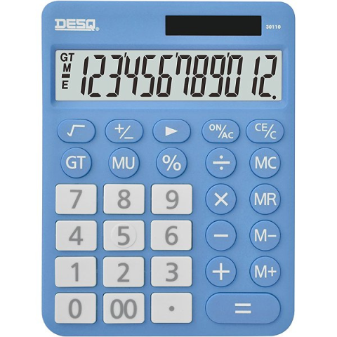 Számológép - asztali, napelemes és elemes, 12 számjegyes LCD kijelző, négyzetgyök, százalékszámítás, Sokat számodozol és nem szeretnél hibázni? Akkor ez a remek DESQ XL, világoskék számológép nagy segítség lesz számodra. Ez a híresen megbízható asztali számológép megbirkózik az egyszerű példákkal, va