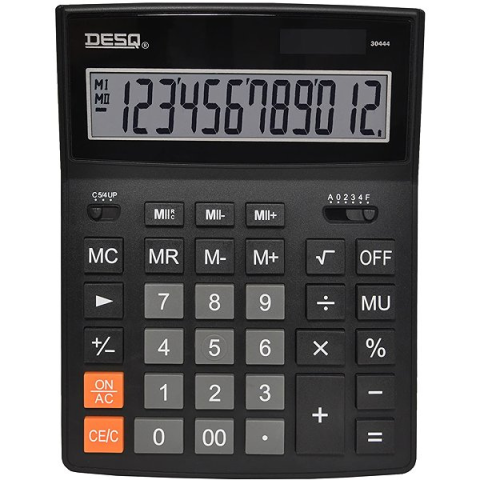 Számológép - asztali, napelemes és elemes, 12 számjegyes LCD kijelző, négyzetgyök, százalékszámítás, Sokat számodozol és nem szeretnél hibázni? Akkor ez a csodás DESQ XXL, fekete számológép óriási segítség lesz számodra. Ez a kitűnő asztali számológép kiszámolja az egyszerű számításokat, szóval tökél