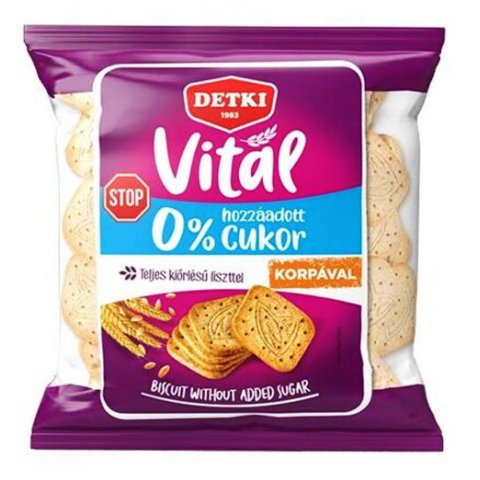 Detki Vitál háztartási keksz korpával 180 gCukormentes, élelmi rostban gazdag keksz. Ez a változat a hagyomány