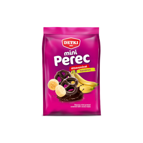 Detki 160g Mini Perec Banános ízű étbevonómasszával mártva Fedezd fel a Detki Mini Perec különleges világát: banános ízű étbevonómasszával mártva, mely roppanós külső és lágy, édes belső harmóniájával kényezteti az ízlelőbimbókat. A 160 g-os csomag p