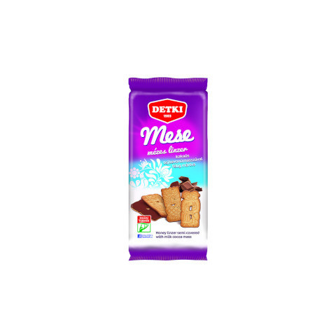 Detki 180 g Mese mézes Étcsokis linzer félig mártva Íme egy igazi mesés finomság, amely a gyerekek és a felnőttek kedvence lehet. Mézes illat és selymes étcsokoládé bevonat találkozik ezen a félig mártott linzeren, hogy minden harapás mesét idézzen.