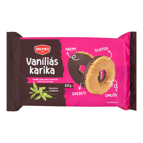 Vaníliás teasütemény kakaós étbevonómasszával félig mártva.