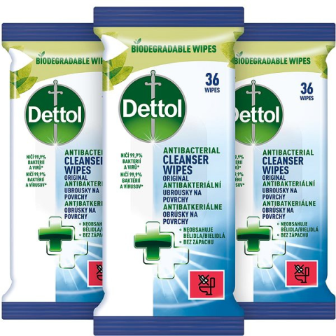 Dettol Antibakteriális felülettisztító törlőkendő, 3× 36 db tisztító- és takarítószer, higiénia termékleírás