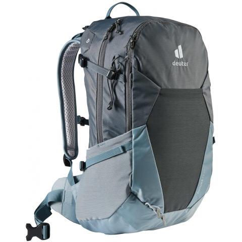 Hátizsák - női, űrtartalom 21 l, anyaga poliészter és poliamid, értékmegőrző zseb, bekapcsolás cipzárral, párnázott pántok, anatómiailag formázott hevederek és összehúzó pántok, felső hordfül, légáteresztő hátsó fal, kulaccsal kompatibilis és integrált hátizsák esővédő, újrahasznosított anyagból készült, terhelhetősége 7 kg, tömege 1,16 kg, szürke kivitel Az ergonomikus Deuter női hátizsák kulcsfontosságú tartozék mindazok számára, akik gyakra