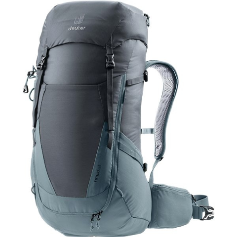 Túrahátizsák 26 l - férfi, anyaga poliészter és poliamid, kulacstartó zseb, bekapcsolás kétutas cipzárral, állítható hevederek, derékheveder és hurok botokhoz és jégcsákányhoz, fényvisszaverő elemek, légáteresztő hátsó fal, kulaccsal kompatibilis és integrált hátizsák esővédő, újrahasznosított anyagból készült, tömege 1,4 kg, szürke kivitel Ez a könnyű, technikai hátizsák tökéletes a sportosabb egynapos túrákhoz: Az Aircomfort hátirendszer rendkí