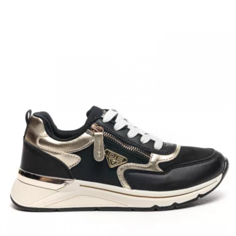 Devergo női PEARL sneaker, amely stílusos és kényelmes választás a mindennapokra. Elérhető fekete színben arany részletekkel vagy fehér változatban ezüst díszítéssel, így mindenki megtalálhatja a saját stílusához illőt. Oldalán cipzáras díszítés teszi egyedivé, míg a DEV logó sportos és trendi megjelenést kölcsönöz. Könnyű, rugalmas talpa biztosítja a kényelmes viseletet egész nap. Tökéletes választás azoknak, akik egy divatos, mégis praktikus sneaker