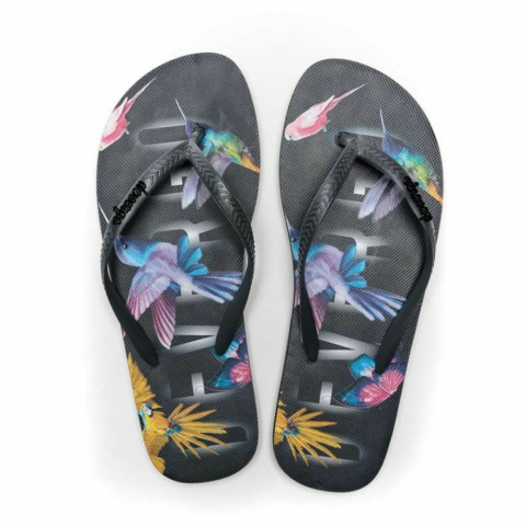 Női flipflop, strandpapucs lábujjközti pánttal. A pántokon márkajelzés található.
