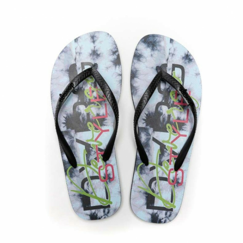 Női flipflop, strandpapucs lábujjközti pánttal. A pántokon márkajelzés található.