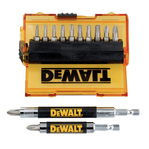 DeWalt bitkészlet, 25 mm: Ph1, Ph2 x 2, Pz2, T10,T15 x 2, T20 x 2, T25 x 2, T30, 125 mm mágneses megvezető, 85 mm kompakt mágneses megvezető.
