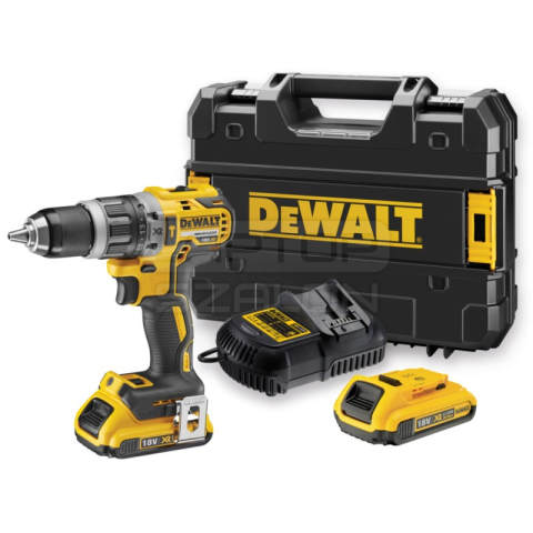 Technical details:Product colour: Black, YellowHammer drilling: YesDrilling: YesUncertainty K: 1.5 m/s²Chuck capacity (min): 1.5 mmChuck capacity (max): 1.3 cmPower:Battery voltage: 18 VBattery capacity: 2 AhBattery technology: Lithium-Ion (Li-Ion)Weight & dimensions:Weight: 1.6 kgDepth: 190 mmWidth: 67 mmHeight: 203 mmPerformance:Torque settings: 15Vibration emission (metal): 2.5 m/s²Drilling diameter in wood (max): 4 cmSound power level: 100 dBMaximum torque (hard applications): 70 N⋅mMaxi