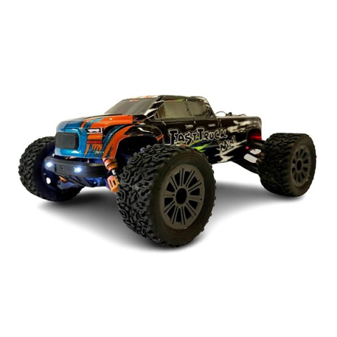Távirányítós autó - monster truck, mérete 11 × 21 × 26,5 (Ma×Sz×H), alkalmas kültéri és beltéri használatra, elektromos egyenáramú motor, négykerék-meghajtás, egyrotoros, led világítás és felfüggesztett alváz, kapcsolható üzemmódok, fényeffektek, max. sebesség 45 km/h, autó Li-Pol akkumulátorral, vezérlés pisztollyal, távirányító 4 AA elemmel (nincs mellékelve) Ez a DF models FastTruck Mini 1:16 4WD RTR autó egy szép és modern játék, nem csak gyerekek