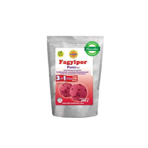 Dia-Wellness fagylaltpor puncs 250 g Készíts otthon puncs ízű fagylaltot gyorsan és egyszerűen fagylaltgép nélkül. Az így készült fagyi csökkentett szénhidrát tartalommal bír, az elkészítéséhez pedig mindössze tej hozzáadása szükséges. 1 tasakból 24 go