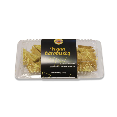 Dia-Wellness vegán háromszög 150 g Élelmi rostforrás Csökkentett nátriumtartalom A nátriumfogyasztás csökkentése hozzájárul a normál vérnyomás fenntartásához. Figyeljen a kiegyensúlyozott és változatos táplálkozásra! Összetevők: búzaliszt, margarin