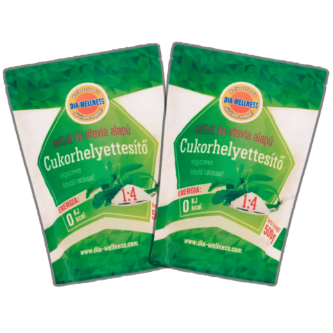 A Dia-Wellness DUO cukorhelyettesítő 2x500 g egy 6 kalóriatartalmú édesítőszer, amely négyszer erősebb, mint a cukor. Ideális választás cukorbetegek számára, hiszen nem okoz akkora vércukorkilengést. Emellett elfelejthetjük a fogszuvasodást is, hiszen mivel nem hagyományos cukorról van szó, így nem okoz problémát.