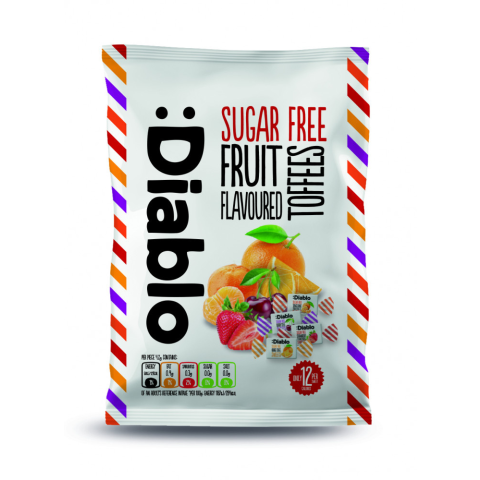 Diablo cukormentes gyümölcskaramella édesítőszerrel 75g Ínycsiklandó gyümölcslevekkel feltöltve egy felemelő cukormentes nassoláshoz. Összetevők: maltitol, izomaltóz, víz, nedvesítő: szorbit, hidrogénezett növényi zsírok (kókusz és/vagy pálmamag), emul