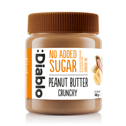 Diablo mogyoróvaj crunchy hozzáadott cukor nélkül 340 g A Diablo mogyoróvaj 100%-ban pörkölt földimogyoróból készül. A benne lévő ropogós földimogyoró darabok fokozzák az ízélményt. Kiválóan kenhető. Hozzáadott cukrot, sót, pálmaolajat, tartósítószert