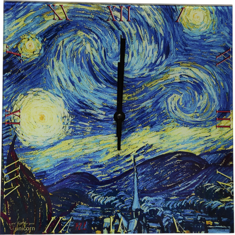 1 kép Diamant Üveg falióra szögletes 30x30cm, Van Gogh: Csillagos éj