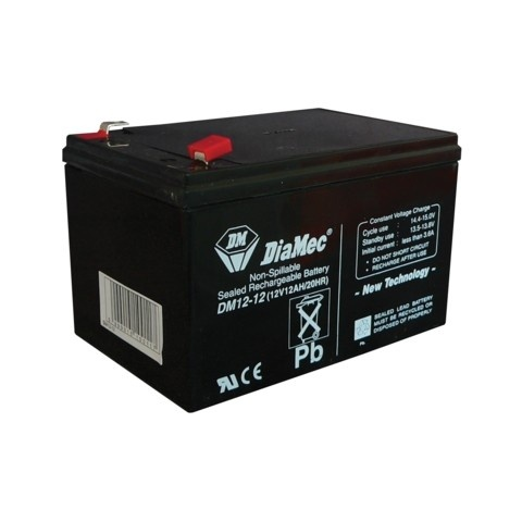 DIAMEC akkumulátor biztonságtechnikai rendszerekhez és elektromos játékokhoz, 12 V, 12,0 Ah, 151 x 99 x 95 mm, 3,65 kg, normál tápegységekhez. – Hosszú élettartam, jó dinamikus viselkedés, gondozásmentes, teljesen zárt.