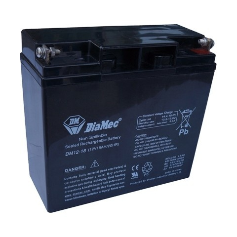 DIAMEC akkumulátor biztonságtechnikai rendszerekhez és elektromos játékokhoz, 12 V, 18 Ah, 181 x 76 x 167 mm, 5,1 kg, normál tápegységekhez. – Hosszú élettartam, jó dinamikus viselkedés, gondozásmentes, teljesen zárt.