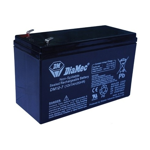 DIAMEC akkumulátor biztonságtechnikai rendszerekhez és elektromos játékokhoz, 12 V, 7 Ah, 151 x 65 x 93,5 mm, 2,1 kg, normál tápegységekhez, normál csatlakozó. – Hosszú élettartam, jó dinamikus viselkedés, gondozásmentes, teljesen zárt.
