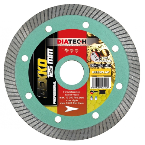 1 kép Diatech gyémánttárcsa GEKKO csempe, greslap, járólap vágására 30/25,4×180mm (gk180)