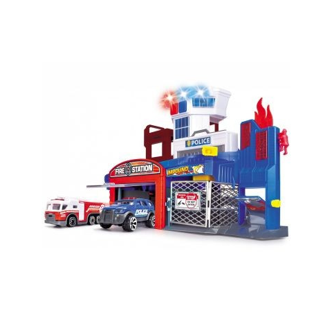 A gyerekek imádják azokat a szakmákat, amelyeket egyenruhában kell végezni, ám a tűzoltók és a rendőrök magasan kiemelkednek közülük. A Dickie kétszintes tűzoltó- és rendőrállomás garantáltan órákra leköti majd a gyerekek figyelmét, már csak azért is, mert a hozzá tartozó tűzoltóautó létrája forgatható, és valódi vízpermettel végzi az oltást. Az állomáson található egy lift, valamint egy cella is,