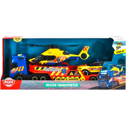 Ez a három járműből álló készlet a mentés és a sürgősségi segítségnyújtás témája körül forog. A csomagban megtalálod egy Volvo FH 16 alacsonyrakodó teherautó modelljét, egy Airbus H160 mentőhelikopter modelljét és egy Volvo XC40 mentőjármű modelljét.