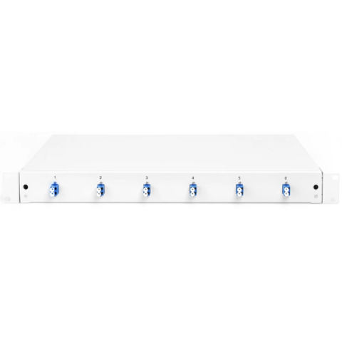 FO splice box, 1U, equipped, 6x LC DX, OS2 incl. splice cassette, colored pigtails, couplers. - Completely prefabricated, fiber pigtails exposed and inserted into the splice cassette(s) - Colored...