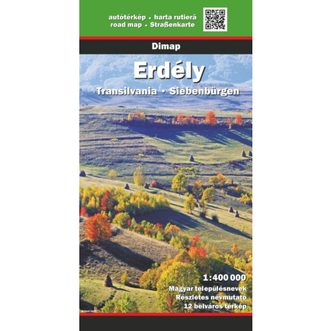 Erdély autós térkép magyar nyelvű településnevekkel, Részletes autótérkép történelmi magyar nevekkel. Típus: hajtogatott Méretarány: 1:400 000 Tartalmi jellemzők: A településnevek két nyelven szerepelnek. A térképen megtalálható 12 város belterületi té