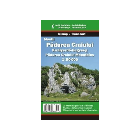 Királyerdő hegység turista térkép, Királyerdő térkép Román, magyar és angol nyelvű ismertetővel, hat barlang vázlatos rajzával; földrajzi fokhálózat ábrázolása GPS-hez