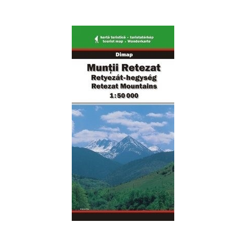 Retyezát hegység turista térkép. Az elsősorban gyalogos turizmus céljaira alkalmas térkép jelmagyarázata négy nyelvű (magyar, román, angol, német), míg a hátoldali részletes ismertető szöveg és az útvonalak leírása három nyelvű (román, magyar, angol).