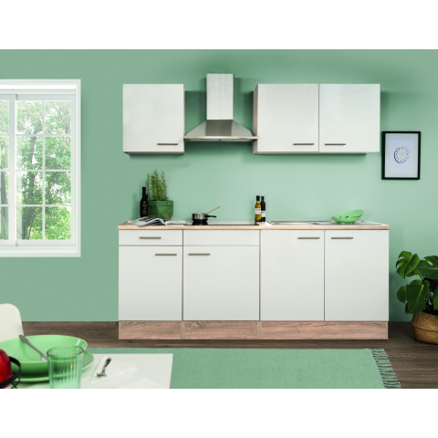 Teljes Dinewell Yorki 210 konyhablokk sonoma tölgy korpusz,selyemfényű fehér fronttal termékleírás