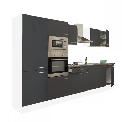 Yorki 330 konyhablokk fehér korpusz,selyemfényű antracit fronttal. A tökéletes konyha megteremtője! Minőségi hazai gyártású moduláris konyhabútor, mely kielégíti bármely kedves vásárló igényét. Laminált 16 mm-es bútorlapból készülő korpusz, fehér szín