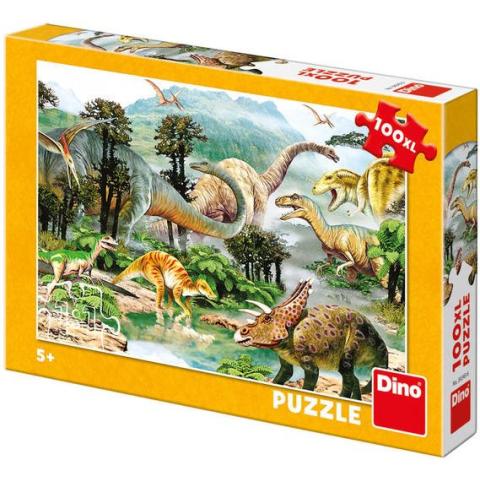 Puzzle - anyaga papír, 100 darabos, 5 éves kortól ajánlott Dino A dinoszauruszok élete - leglényegesebb előnyök A nagyszerű Dino puzzle 5 éves kortól javasolt a gyerekeknek 100 darabból áll Anyaga: papír