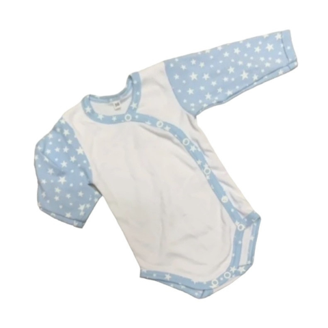 1 kép DinoDini Réklis Hosszú Ujjú Body - Fehér/Kék Ujjú Csillagos - 56