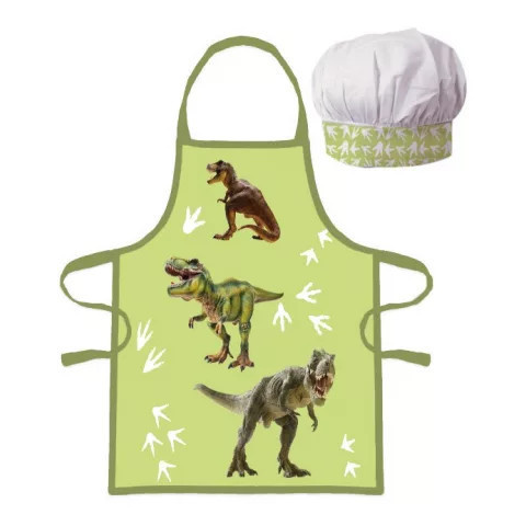 Dinosaur, Dinoszaurusz Gyerek kötény 2 darabos szett Anyaga: 100% poliészter Szett tartalma: - 1 db kötény - 1 db kuktasapka Ajánlott 3-8 éves korig.