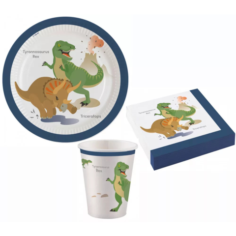 Dinosaur, Dinoszaurusz party szett 36 db-os 23 cm-es tányérral Tartalama: - 1x20 db szalvéta 33x33 cm - 1x8 db pohár 250 ml - 1x8 db tányér 23 cm