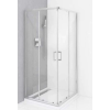 Króm színű két tolóajtós, dupla alsó és felső görgős szögletes zuhanykabin 80x80 cm-es méretben. A zuhanykabin 5 mm vastag víztiszta edzett vízlepergető biztonsági üveggel van ellátva, valamint rozsdamentes acél és alumínium elemekkel rendelkezik. Dipl