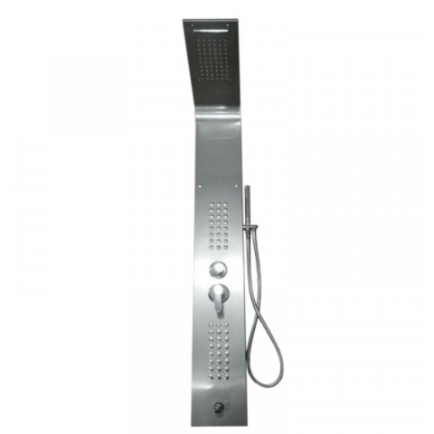 Zuhanypanel 5 funkciós kézi zuhanyfejjel Szálcsiszolt alumínium Magassága: 160 cm 5 állásban állítható vízszabályozás: -Esőztető zuhany funkció -Vízesés funkció -Szemből jövő masszírozó vízsugár -Kézi zuhany - Lábmosó Zuhanypanel jellemzői: Alapanyag: